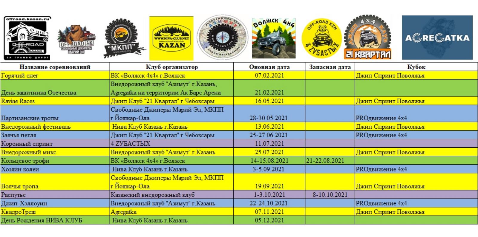 График проведения этапов кубков PROдвижение 4х4 и другие автомобильные мероприятия на 2021 год.