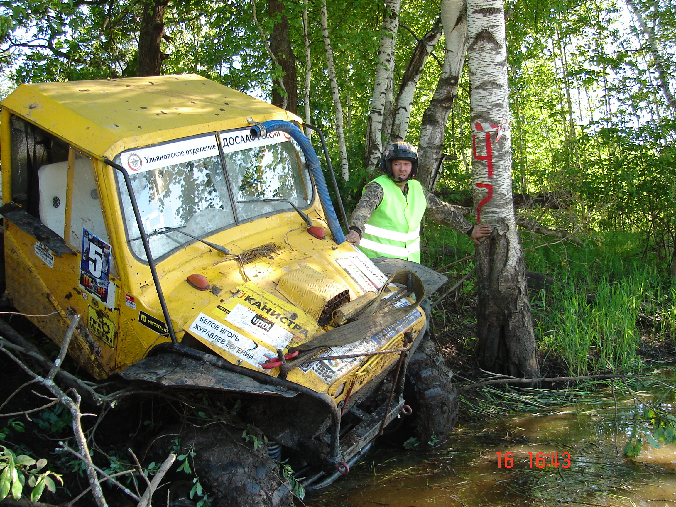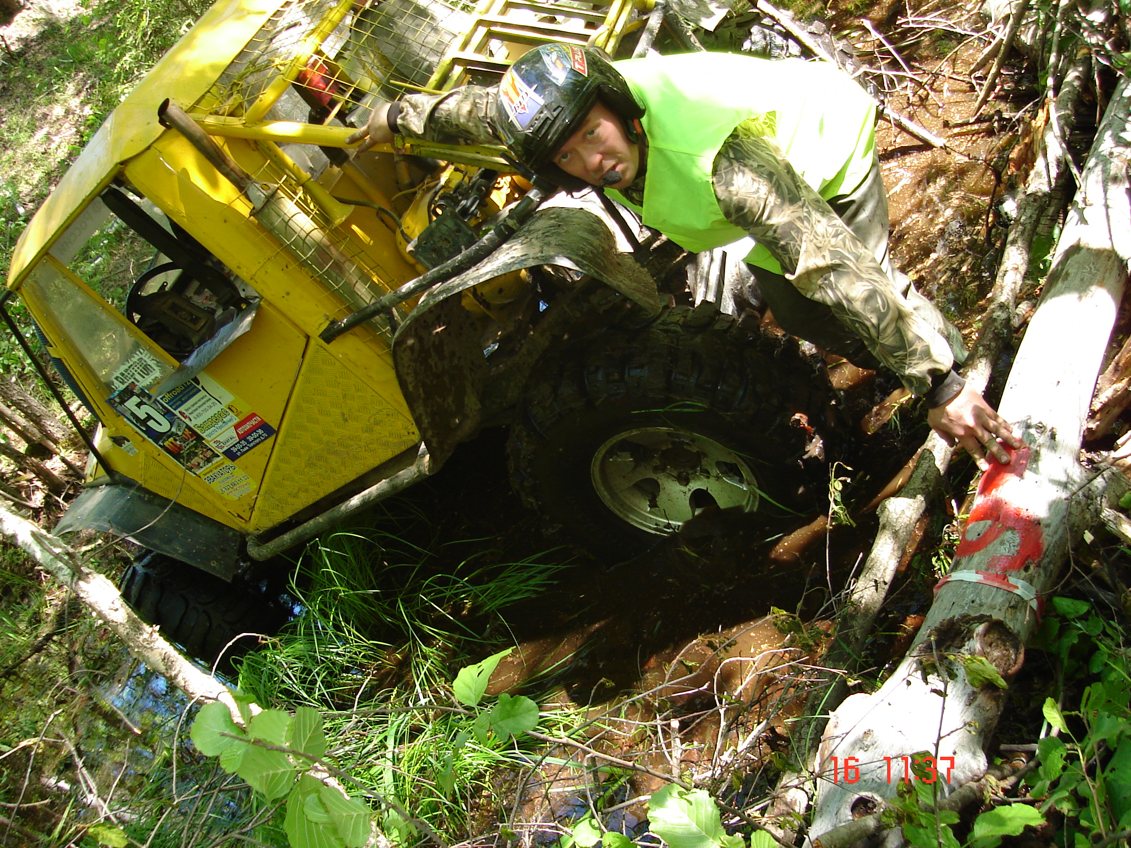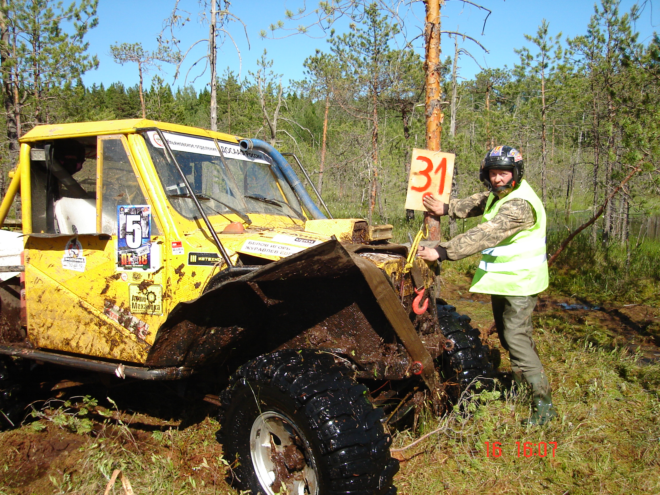 Заезжаем в "СПОРТИВНЫЙ ЛЕС". Началась тяжелая грязь. После этой точки, обнаружили отсутствие необходимого воздуха в ресиверах. После полдника поехали в лагерь. Гонка завершена. В последующем сделаны выводы, приняты меры.